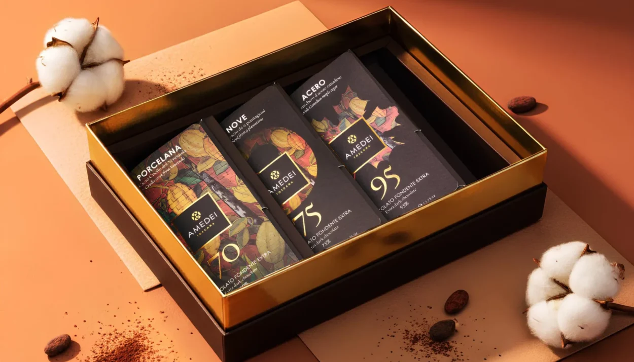Amedei, icona del cioccolato d’autore nata nel cuore della Chocolate Valley italiana, e Pineider, storica maison fiorentina specializzata in carta, pelletteria e strumenti di scrittura dal 1774, condividono radici comuni: l’amore per la lentezza produttiva, la cura assoluta del dettaglio e un legame autentico con il territorio.