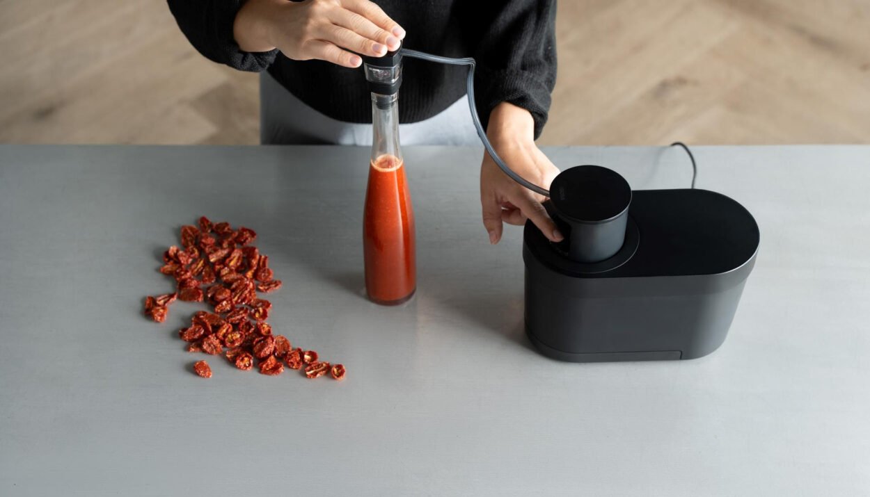 Grazie alla pressione negativa alternata e a uno speciale anello per marinatura, il dispositivo consente di ottenere risultati in soli dieci minuti, contro le ore necessarie con i metodi tradizionali.